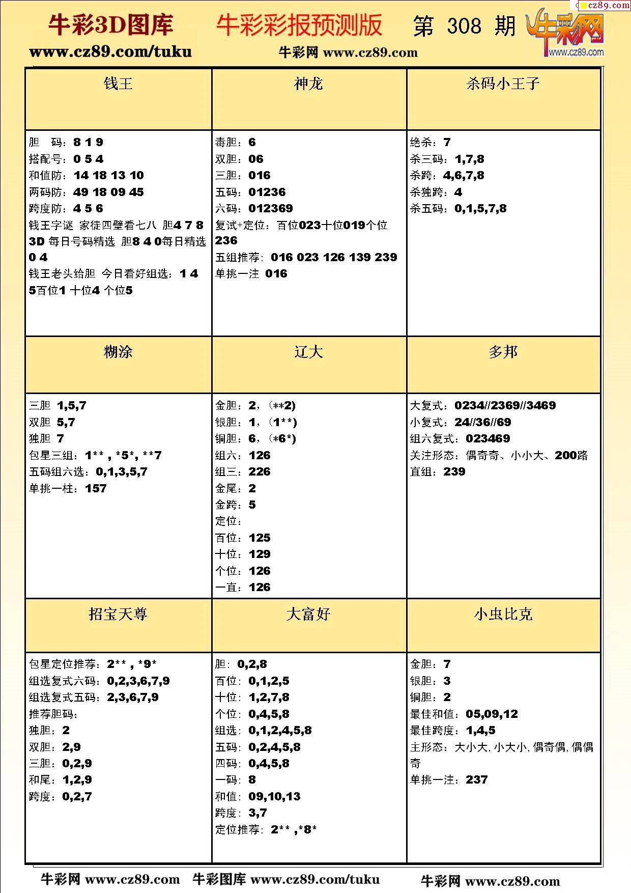 牛彩版3D预测彩报图25年308期打印版