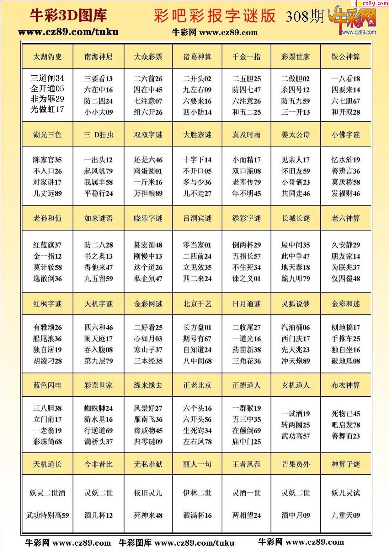 > 牛彩版3D字谜彩报图25年308期打印版
