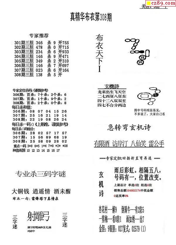 2025308期真精华布衣123456
