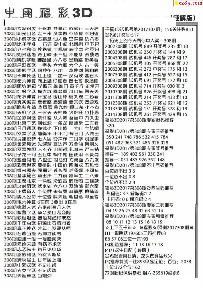 > 杀手+鑫马快报+字迷汇总25年308期3d图谜
