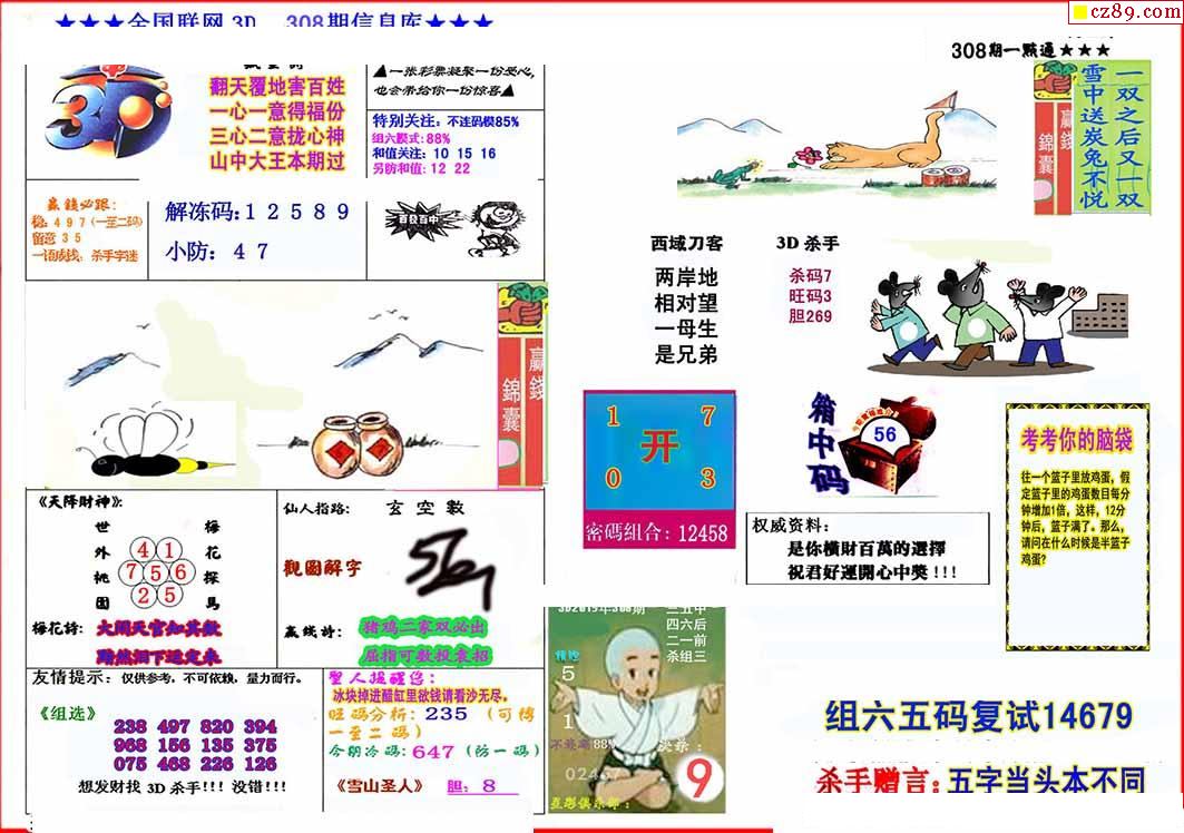 杀手+鑫马快报+字迷汇总25年308期3d图谜