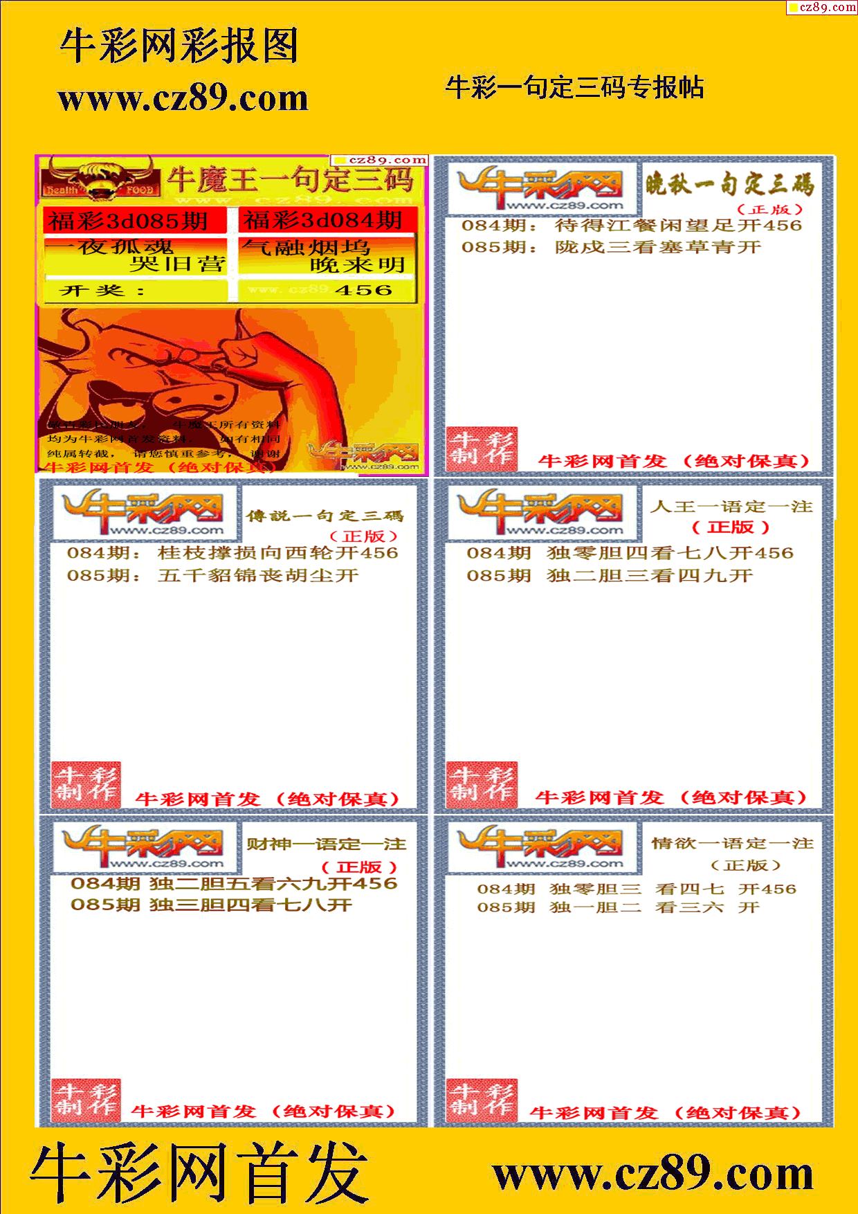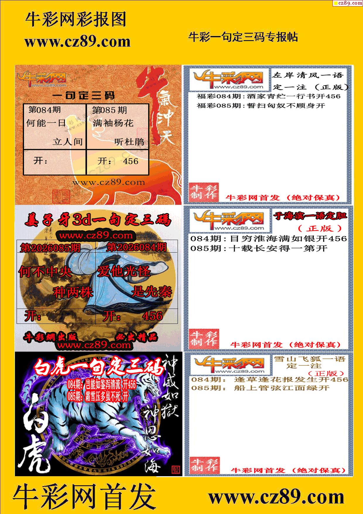 2026085期牛彩专家一句定三码彩报